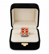 This stunning Marjan (Natural Coral) ring is set in a finely crafted silver frame, featuring vibrant red coral stones arranged in a powerful rectangular design. The rich red tone symbolizes strength, confidence, and vitality β making it a perfect statement piece.